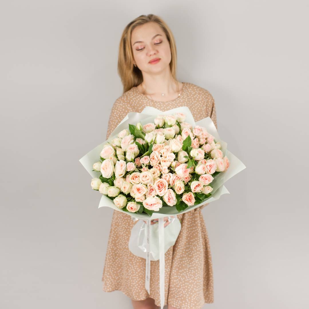 Букет из кустовых пионовидных роз кремового цвета арт. 47537