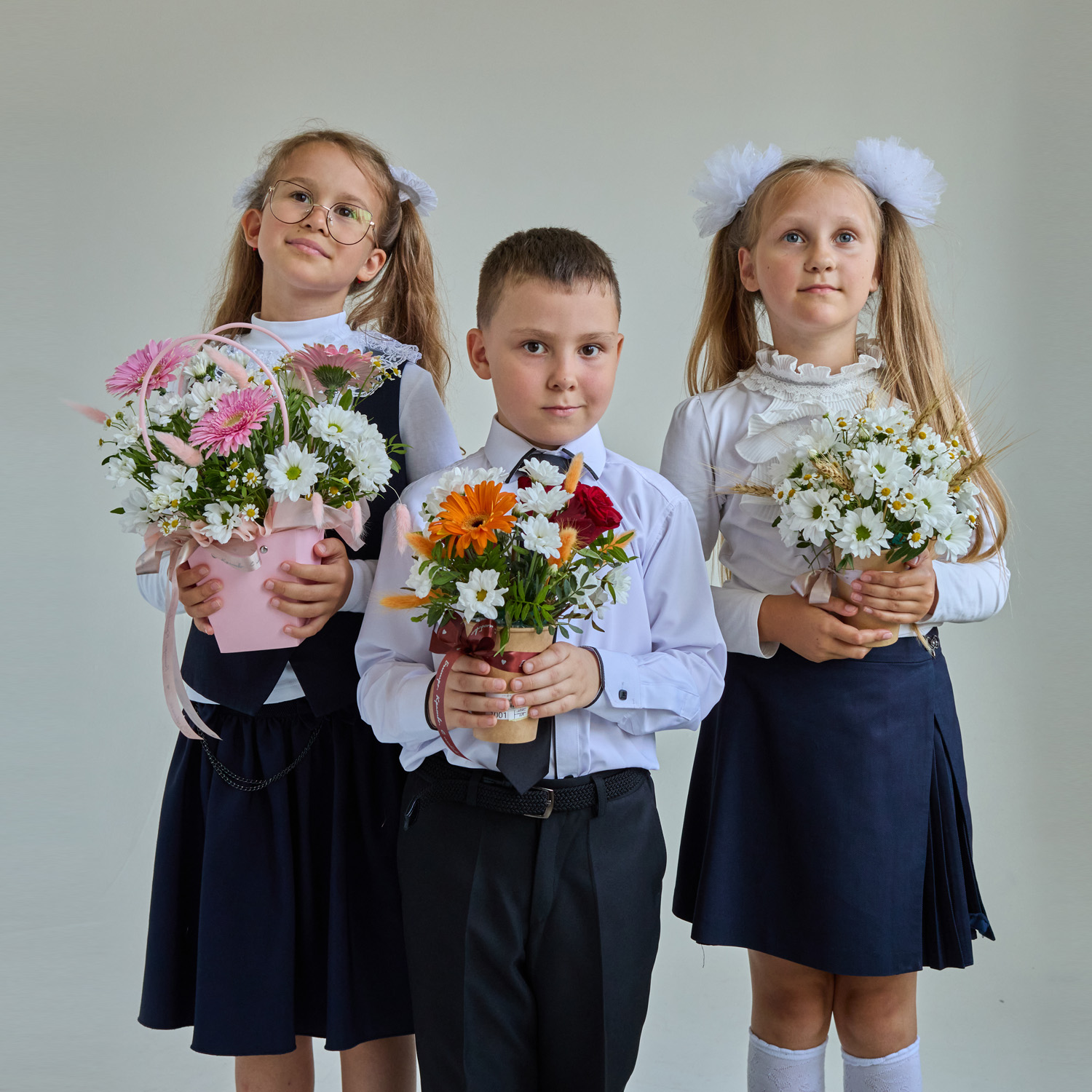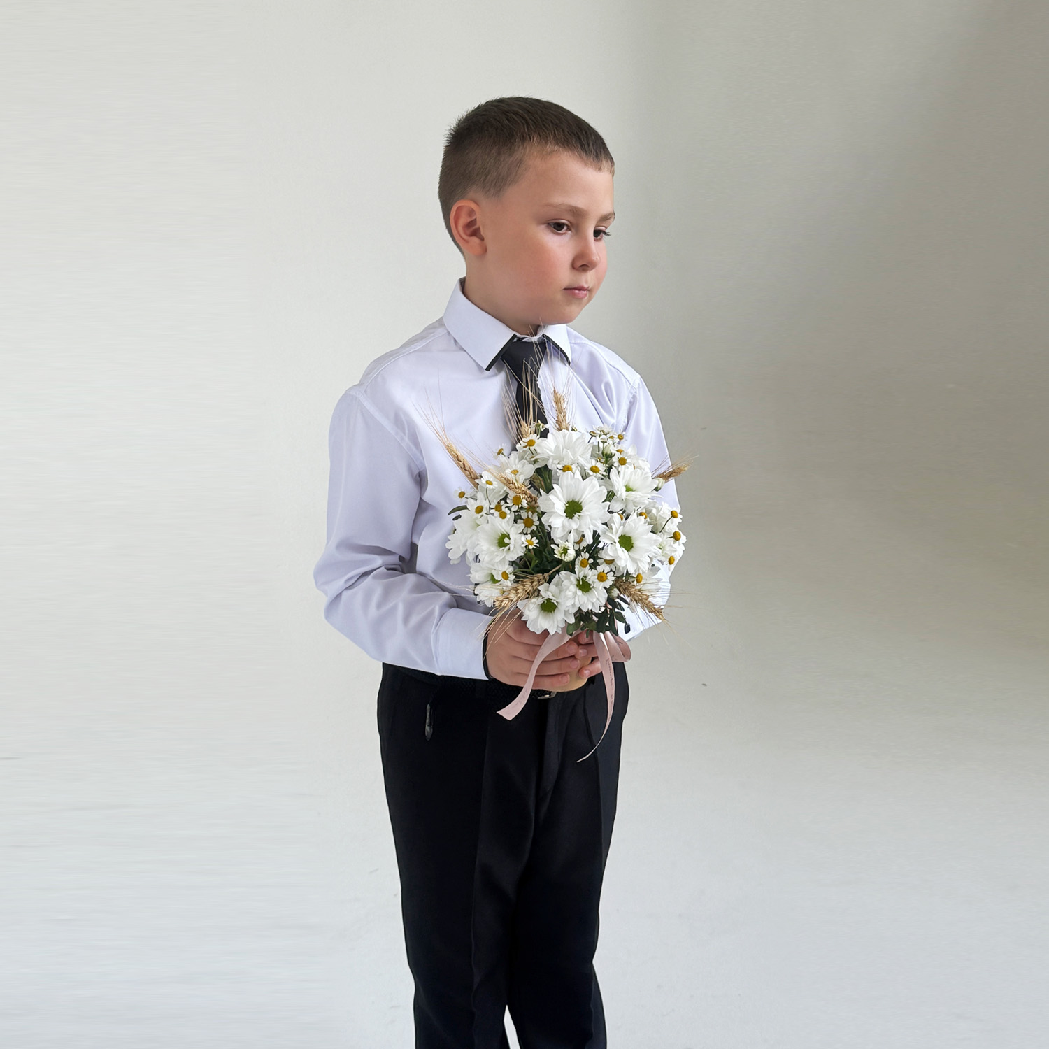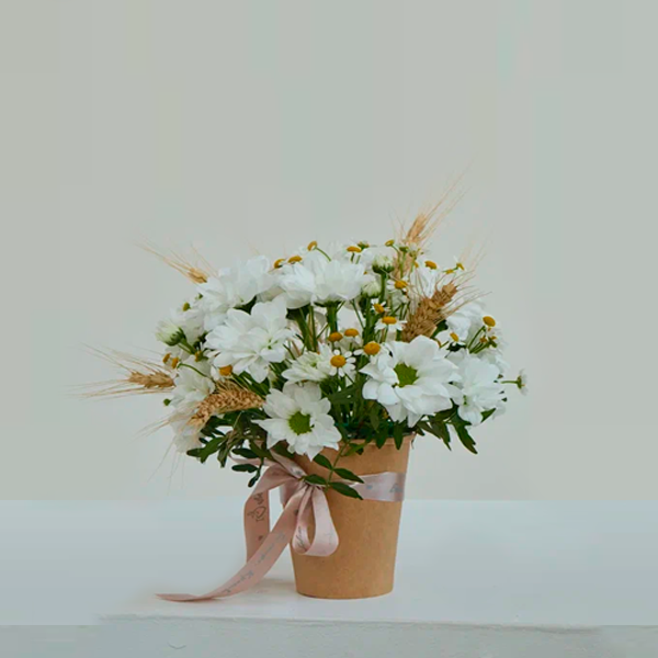 Этот букет на 1 сентября станет практичным решением для школьной линейки: он лёгкий, компактный и не требует вазы. Его можно подарить учителю, вручить ребёнку для торжественного фото — композиция подчеркнёт праздничность момента, сохраняя при этом комфорт и простоту. Такой формат особенно удобен для детей, ведь стаканчик не занимает много места и не доставляет хлопот.